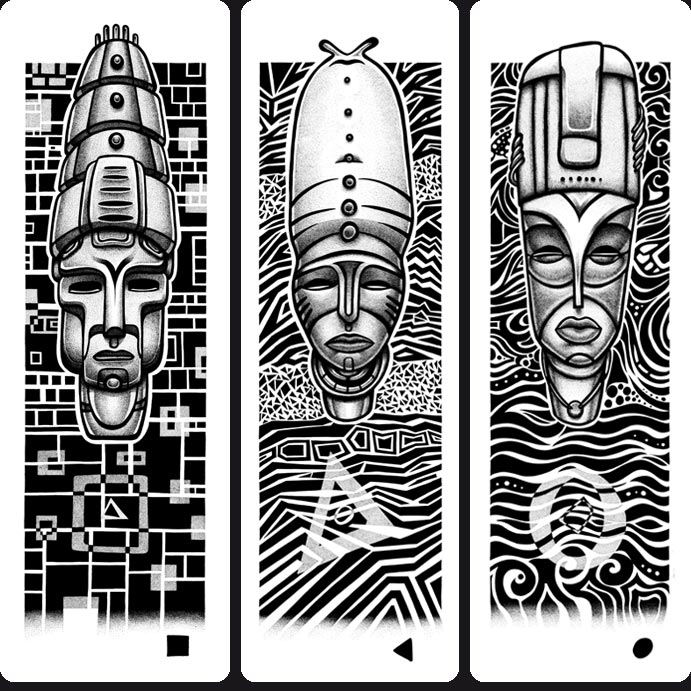 Totem. Elogio al quadrato | Totem. Elogio al triangolo | Totem. Elogio al cerchio (Maschere light&dark)